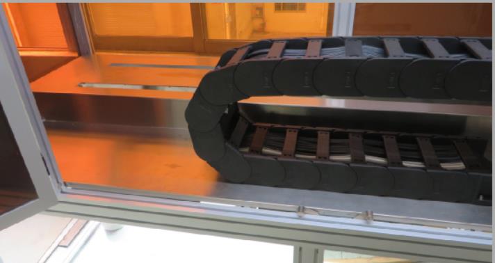 把受测试的电缆按规范安装在拖链中,并将芯线连接到电控箱中,在电控箱的控制之下,伺服电机带动拖链连同拖链电缆,在一定的速度、加速度、行程,以及转弯半径的条件之下,按设定的循环次数,来回不停地运转,直到电缆出现电性能故障(断芯、短路等)或者循环次数已满而停止运转。